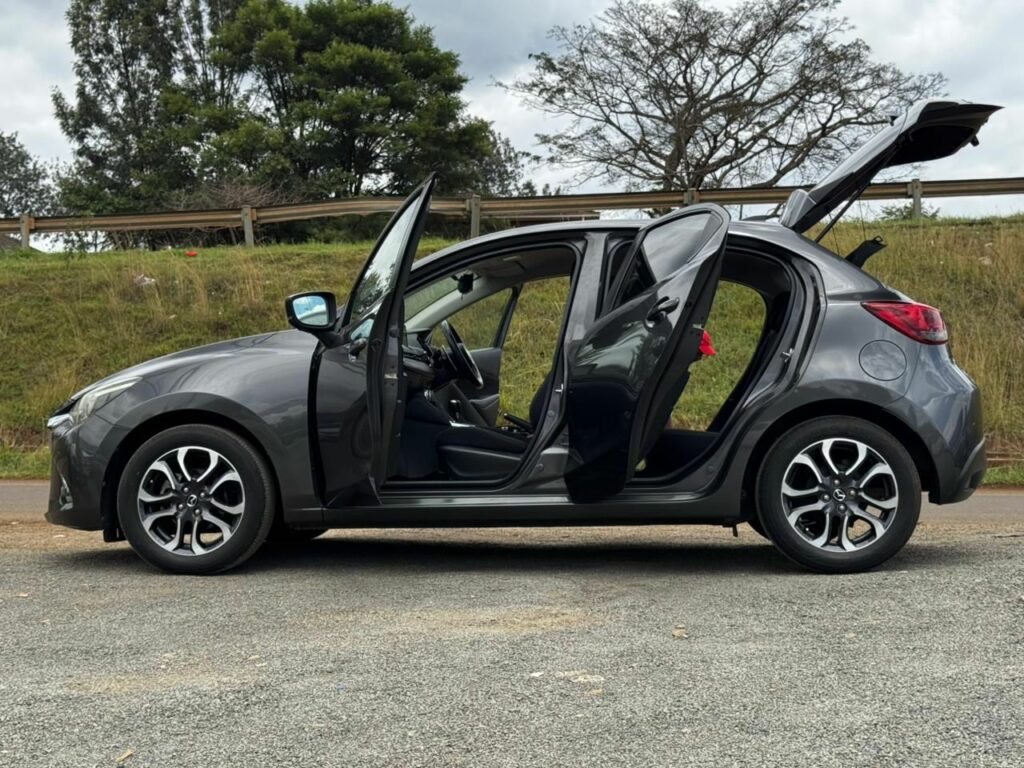 *🚗Mazda Demio (SkyactivD)| 2018 Model*✅1500cc Diesel engine ✅15” Mazda alloy rims ✅Black premium fabric upholstery ✅Soft-touch dashboard with chrome accents ✅Leather wrapped steering wheel with double controls ✅Mazda connect infotainment system ✅Dual zone automatic climate control ✅Traction Control System ✅Parking sensors and Reverse camera ✅Lane departure warning ✅Dashboard camera