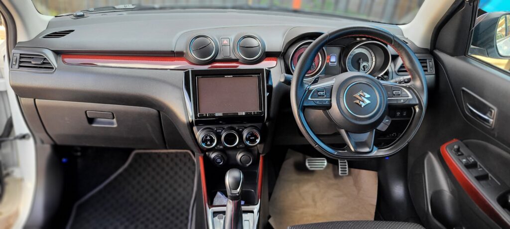 The white paint gives the Swift Sport a sharp, modern presence, perfectly complementing its aggressive styling. From the sculpted body lines to the sporty front grille and compact stance, this car looks fast even when parked. It’s subtle enough for daily use, yet bold enough to turn heads.